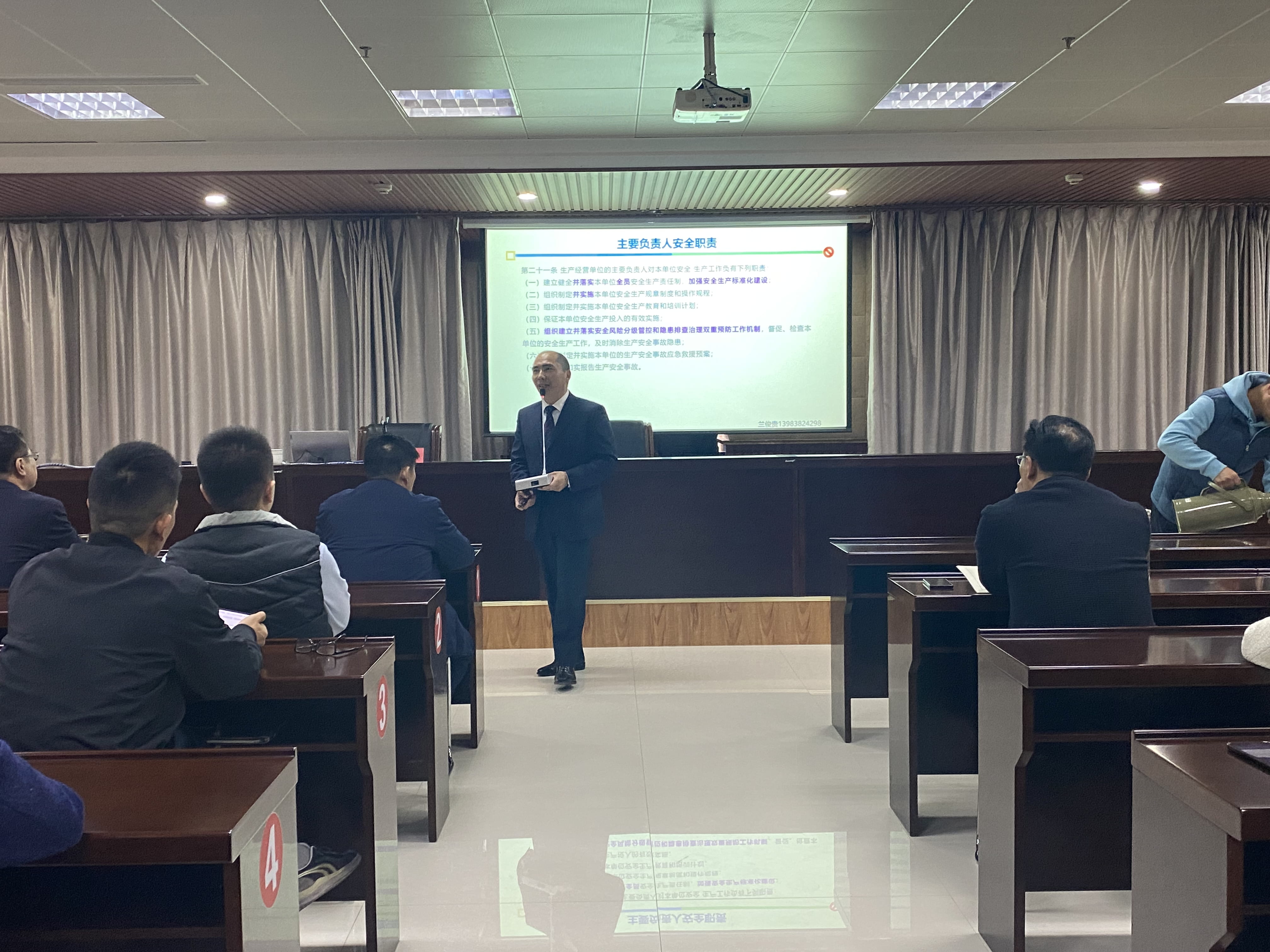 最后,綠達集團執行董事、總經理孫安慶對培訓進行了總結,要求參訓人員認真消化吸收蘭教授的授課內容,以本次安全生產管理培訓為著力點和切入點,運用“結合規范、基于風險”的新思維開展安全隱患排查,切實把安全生產法律法規、技術標準落實到每個角落,全面夯實安全生產基礎,實現本質安全,努力打造綠達集團“平安工地”精品工程。